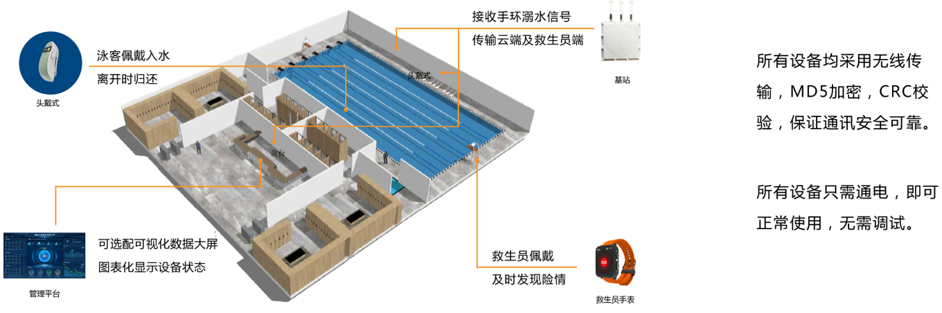 頭戴設(shè)備內(nèi)置水浸傳感器、陀螺儀、微型處理器和無線通訊系統(tǒng);